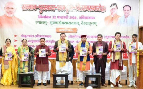 देहरादून 22 फरवरी । मुख्यमंत्री पुष्कर सिंह धामी ने रविवार को मुख्यमंत्री कैम्प कार्यालय स्थित मुख्य सेवक सदन में आयोजित संस्कृत छात्र प्रतिभा सम्मान कार्यक्रम में प्रतिभाग किया। इस अवसर पर उन्होंने गार्गी बालिका संस्कृत छात्रवृत्ति तथा डॉ. भीमराव अंबेडकर अनुसूचित जाति एवं अनुसूचित जनजाति संस्कृत छात्रवृत्ति विद्यार्थियों को प्रदान की। कार्यक्रम के दौरान मुख्यमंत्री […]