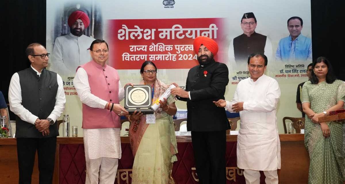 देहरादून: शिक्षक दिवस के अवसर पर शुक्रवार को राजभवन में ‘‘शैलेश मटियानी राज्य शैक्षिक पुरस्कार’’ सम्मान समारोह आयोजित हुआ। समारोह में राज्यपाल लेफ्टिनेंट जनरल गुरमीत सिंह (से नि), मुख्यमंत्री पुष्कर सिंह धामी और शिक्षा मंत्री डॉ. धन सिंह रावत ने वर्ष-2024 में शैलेश मटियानी राज्य शैक्षिक पुरस्कारों के लिए चयनित 16 शिक्षक एवं शिक्षिकाओं को सम्मानित किया। वर्ष-2024 में चयनित 09 प्रारम्भिक शिक्षक, 05 माध्यमिक शिक्षक, 01 शिक्षक प्रशिक्षक एवं 01 संस्कृत शिक्षक को यह सम्मान प्रदान किया गया है। (सूची संलग्न)