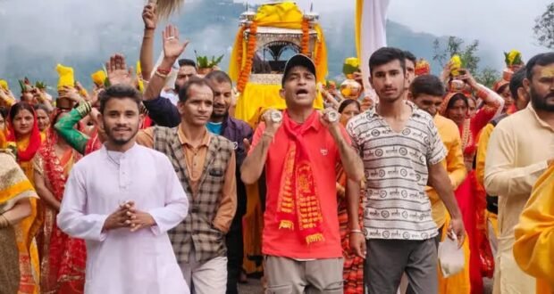 भक्त पारंपरिक वाद्य यंत्रों की घुन पर झूमते हुए नजर आए। यात्रा के पड़ावों पर पर्यटकों व राहगीरों ने भी भगवान नाग देवता की डोली के दर्शन किए। कलश यात्रा के नाग मंदिर पहुंचने पर महिलाओं ने कलश को श्रीमद भागवत कथा मंडप में स्थापित किए। श्रद्धालुओं ने नाग देवता के दर्शन किए और शिवलिंग पर जलाभिषेक किया। नाग देवता की प्रतिमा पर दुग्धाभिषेक कर परिवार की। खुशहाली की कामना की.स्थानीय निवासी राकेश रावत ने बताया कि कलश यात्रा के दौरान महिलाएं अपने सिर पर रखे कलश को हटाती नहीं हैं। अगर कलश हट जाये तो यात्रा पूरी नहीं मानी जाती. गांव के बुजुर्गों का मानना है कि यह मंदिर 500 साल पुराना है।